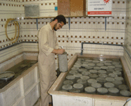This includes taking samples of aggregate from stock piles, of fresh concrete, tack coat and hot asphalt, soils and building blocks. Cores are cut from asphalt for routine QC, while from concrete for determinations of strength or chloride, sulphate and corbonation. Other construction materials include concrete mixing water and pavers. |